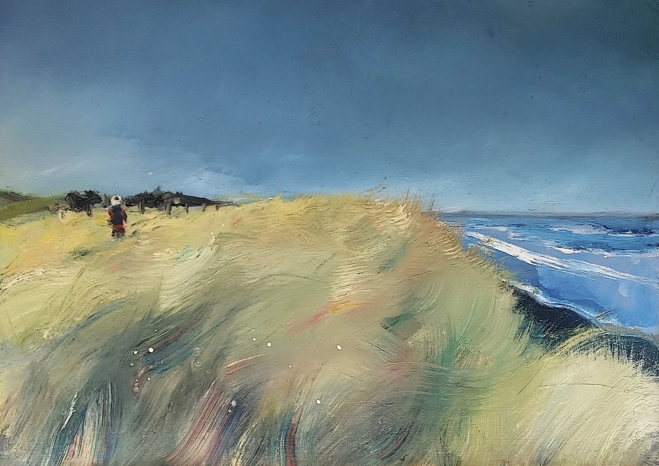 This is what I’m working on right now. From a photo of David and a cow at Druridge Bay, December 2016. Letting it sit for a moment, until I know what to do next. Maybe it’s done…