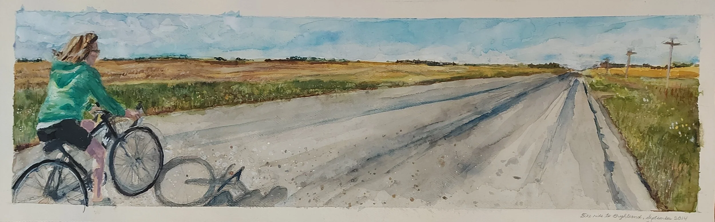 I painted this one while we were back in Saskatchewan this summer. Mom, wind in her hair, looking to the horizon, on her bike, on the road. I miss her every day. Her loving attention to all of our details. Her respect for the spontaneous and her willingness to engage with us wherever we were at. The way that time slowed down with her, never rushing, always time to talk about what's on our minds, time to feel the sun on our faces.
